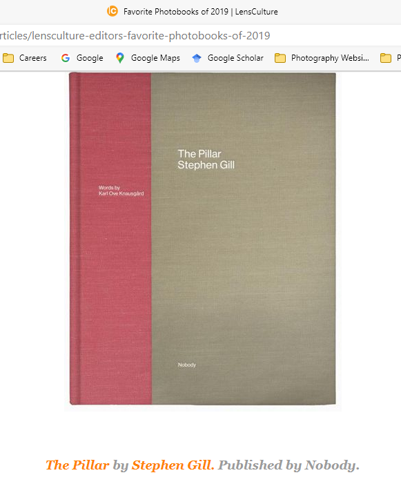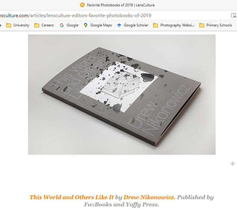 A book is a collection of either/or writings, images and art bound together between two covers. The books shown below are three I chose from Lens Cultures 2019 Favourite Photobook competition.