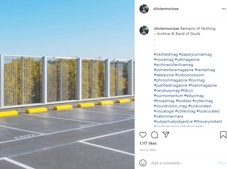 Morisse's work really spoke to me in the sense of lines, shapes and colour. He has a good use of colour and parallel lines. His work looks at the landscape from an angle I tend to see it through. The yellow in the left image contrasts well with the blue sky and grey/white tarmac. Looking at the left image, you know its got to be a car park, but where is it, what level. It looks as though the green behind the fence could be the tops of trees which suggest its not ground level, but up higher, whether that be on a slope or in a multi-storey car park. I would like to apply this to my own work and keep my viewers guessing.