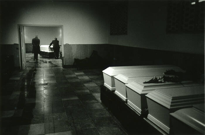 By freeze framing the coffins and paperwork, he still told the story of death without seeing it. Most of his images however are straight and to the point showing the dead bodies.